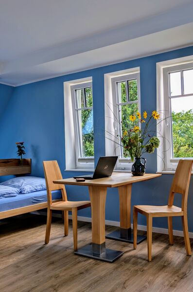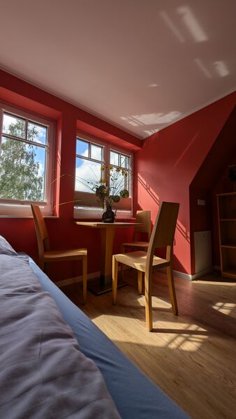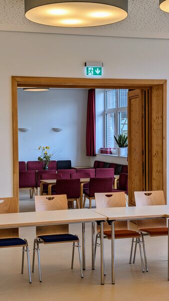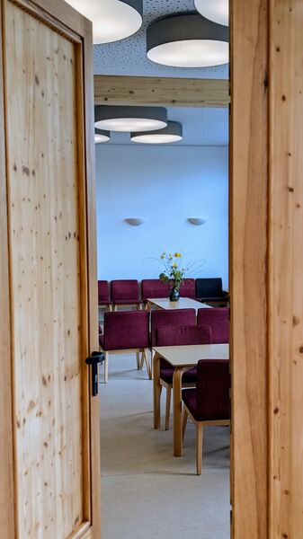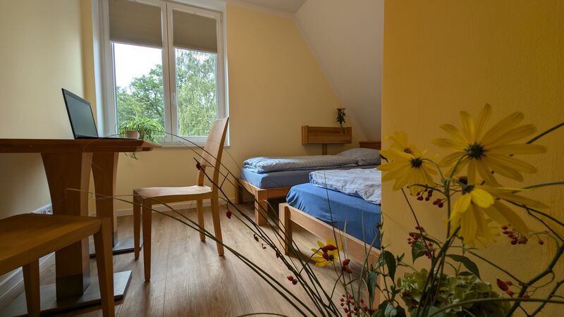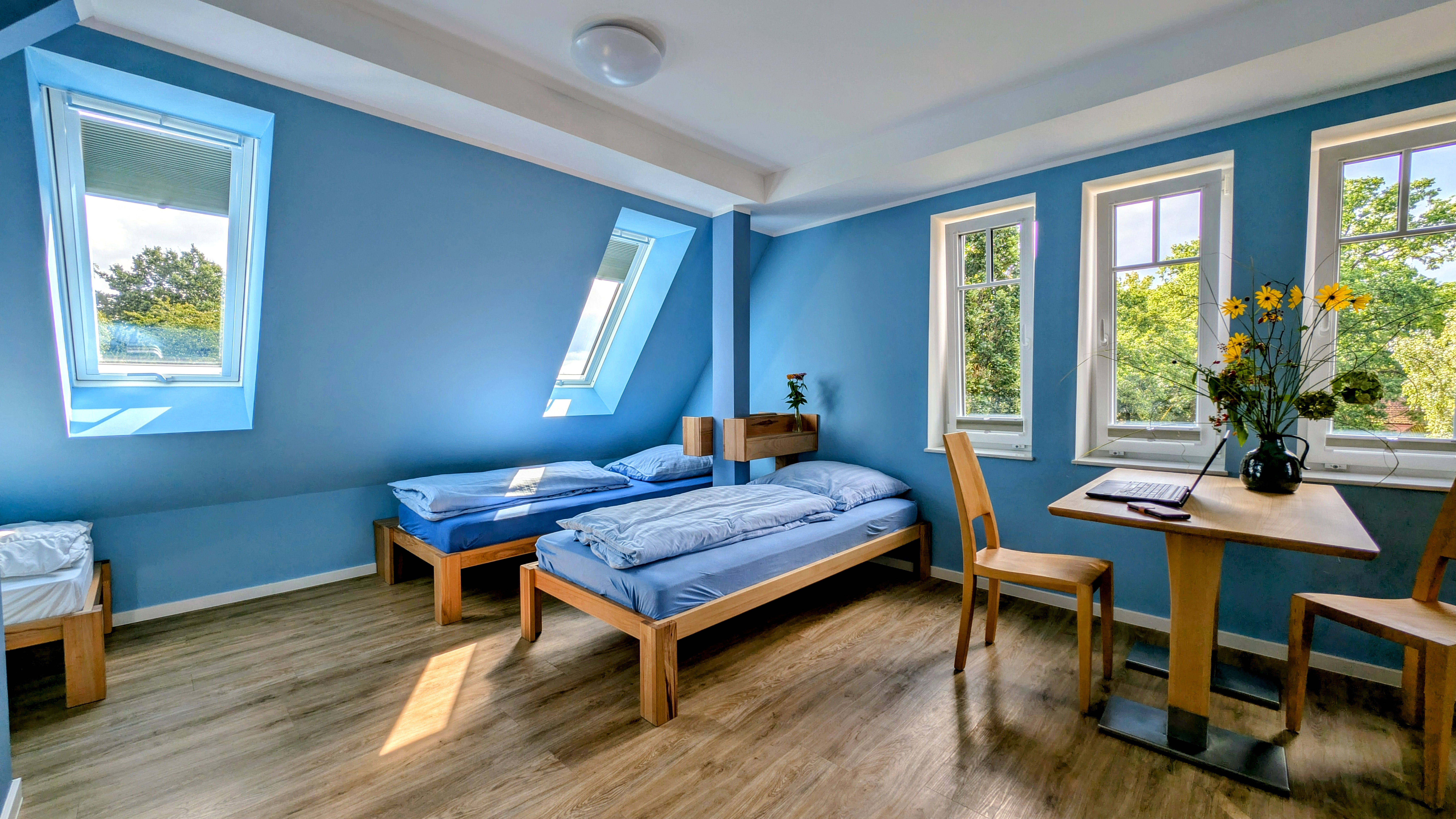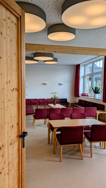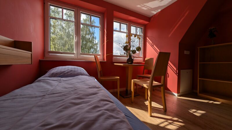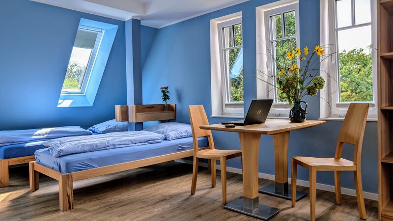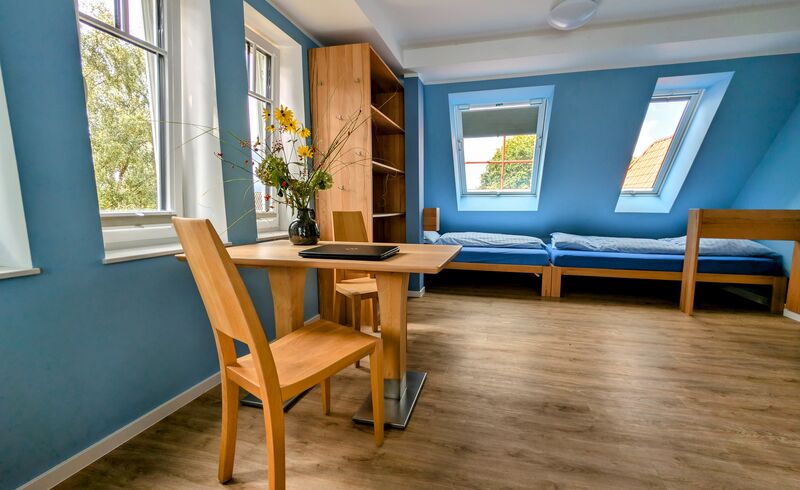 Das Lutherhaus ist das Herz unseres Tagungshauses: Im ehemaligen Schulhaus bieten neue Schlaf- und Aufenthaltsräume Konfirmand*innen-Gruppen viel Platz. Außerdem finden sich hier die Küche und die Speisesäle, sowie den Snackautomaten und den Sportraum mit Kicker und Tischtennisplatte.